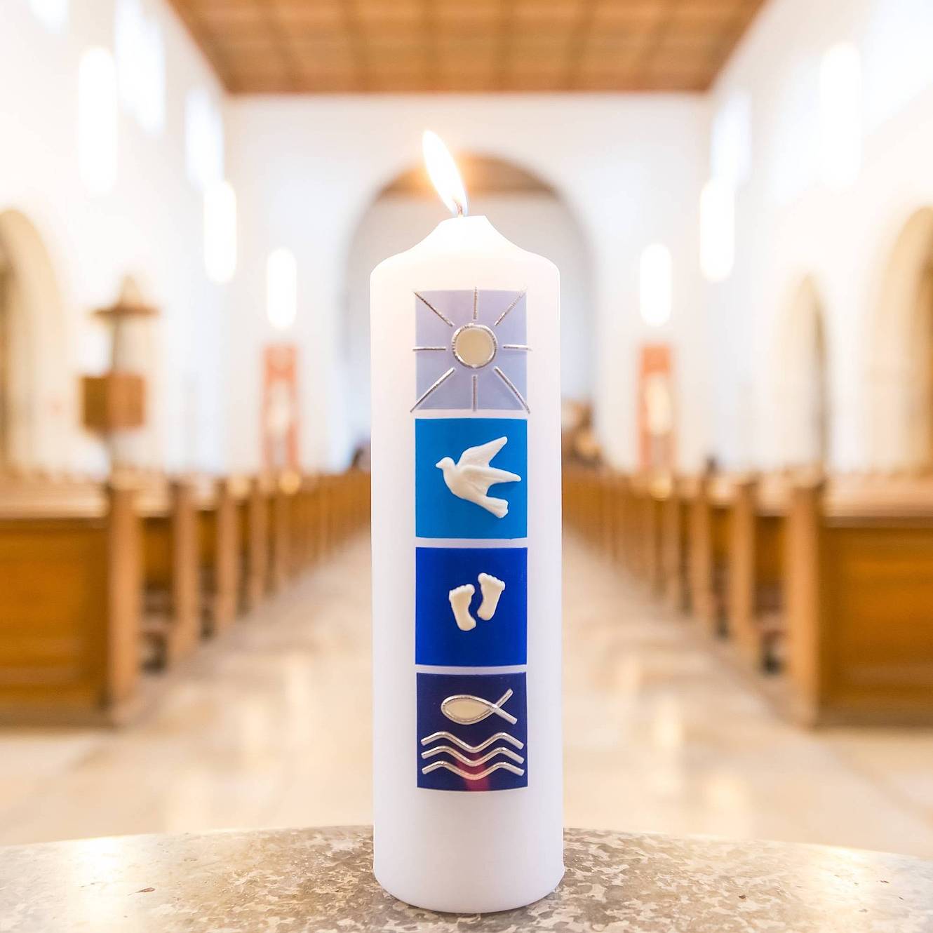 Du bist ein Kind Gottes. Du stehst unter seinem Schutz. Das Wasser der Taufe verheißt Leben, und die Kerze spendet dir Licht.